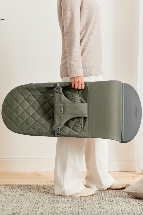 De BabyBjörn Relax Bliss Woven in donkergroen biedt een stijlvolle en functionele oplossing voor ouders die comfort, mobiliteit en veiligheid willen combineren. Deze ergonomische relax is ontworpen voor baby’s van 0 tot 2 jaar (3,5 tot 13 kg) en biedt natuurlijk schommelplezier zonder batterijen of elektriciteit — enkel aangedreven door de bewegingen van je kindje.