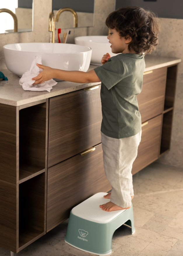 Het BabyBjörn Veilig Opstapje is een onmisbare klassieker in elk gezinsleven. Dit duurzame opstapje, uitgevoerd in stijlvol groen, biedt jouw kindje de zelfstandigheid om het toilet of de wastafel zonder hulp te bereiken. Dankzij het lichte gewicht en de compacte vorm is het gemakkelijk door kleine kinderhanden te verplaatsen van de badkamer naar de keuken of slaapkamer.