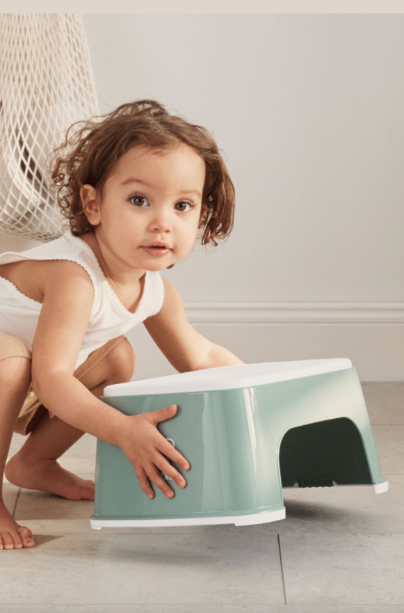 Het opstapje kan op diverse manieren gebruikt worden, afhankelijk van de leeftijd en ontwikkeling van je kindje. Hoewel er geen vaste minimumleeftijd is, wordt aangeraden om het gebruik te starten onder toezicht. Ideaal voor toilettraining, zelfstandig handen wassen of hulp bij het aankleden — dit opstapje groeit mee met de vaardigheden van je kind en wordt al snel een vaste waarde in het dagelijks ritueel.