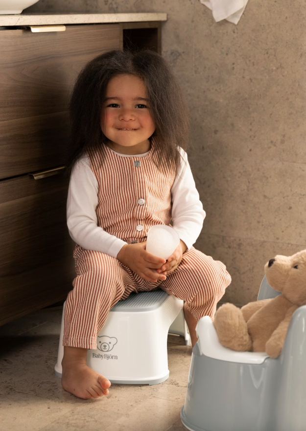 Het opstapje kan op diverse manieren gebruikt worden, afhankelijk van de leeftijd en ontwikkeling van je kindje. Hoewel er geen vaste minimumleeftijd is, wordt aangeraden om het gebruik te starten onder toezicht. Ideaal voor toilettraining, zelfstandig handen wassen of hulp bij het aankleden — dit opstapje groeit mee met de vaardigheden van je kind en wordt al snel een vaste waarde in het dagelijks ritueel.