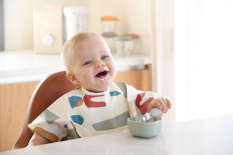 De korte en afgeronde steel past perfect in kleine kinderhandjes, terwijl de ondiepe lepel voorkomt dat hij overvol geladen wordt – wat helpt om morsen te beperken en succeservaringen te stimuleren. De vork heeft licht afgeronde tanden voor maximale veiligheid zonder in te boeten op functionaliteit.