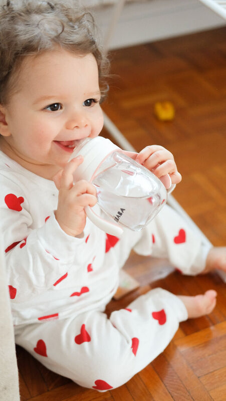 Volledig demonteerbaar en eenvoudig te reinigen: handwas wordt aanbevolen, maar de beker is ook vaatwasserbestendig op een delicaat programma. Het schaalbare ontwerp groeit mee met je kind en ondersteunt een natuurlijke en geleidelijke overstap naar zelfstandig drinken – zonder morsen of frustratie.