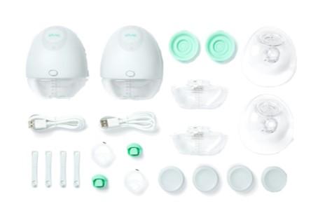 Deze set bestaat uit de Elvie dubbele borstpomp, 2 aansturingsmodules, 4 flessen van 150ml, 2 borstschilden van 24mm, 2 borstschilden van 28mm, 4 afsluiters, 4 tuiten, 4 afsluitplaatjes, 4 deksels, 4 bandjes om je bh aan te passen, 2 USB-oplaadkabels, 2 draagzakken en een gebruiksaanwijzing.