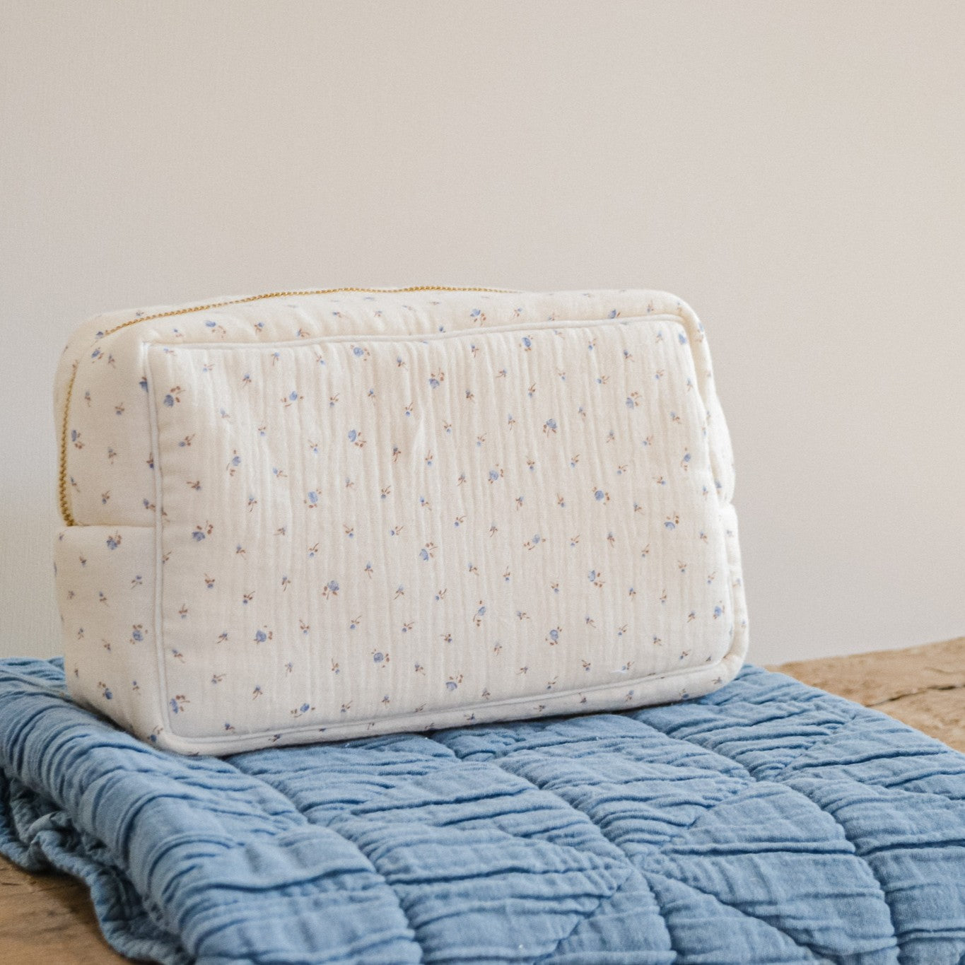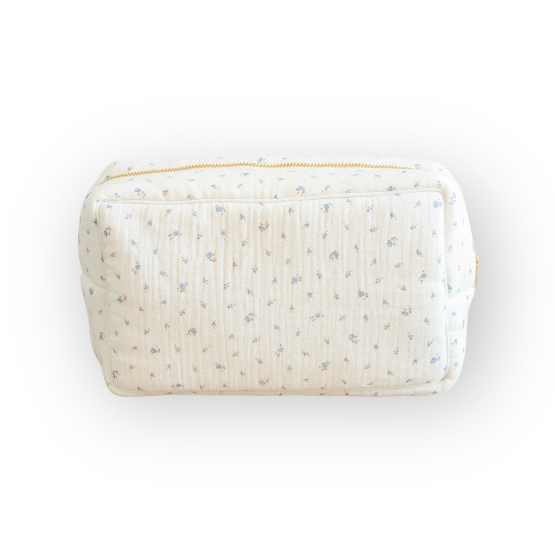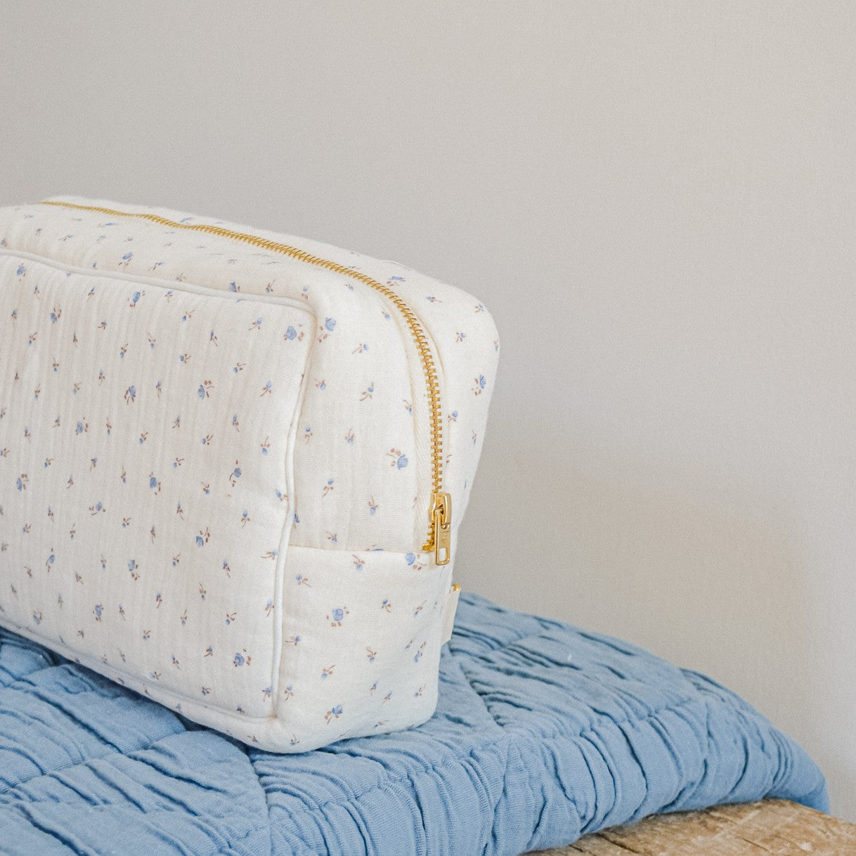 Het ontwerp in ecru met een verfijnde paarse bloemenprint maakt deze toilettas niet alleen functioneel, maar ook een esthetische aanvulling op je verzorgingscollectie. De tas is zacht aanvoelend, licht van gewicht en gemakkelijk mee te nemen in een luiertas of onder de kinderwagen.