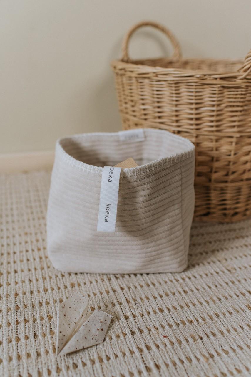 Waar laat je al die losse spulletjes die je nodig hebt tijdens het verschonen of aankleden van je baby? Met een commodemandje heb je alles op een plaats en binnen handbereik. Het mandje is handig en stylish in een en een must-have op de commode! Koeka maakt opbergmandjes in verschillende stijlen en kleuren zodat je er altijd wel een kan vinden die bij het interieur van je babykamer past. Het mandje is aan de binnenzijde verstevigd zodat het niet inzakt en je kan naar eigen smaak de rand omvouwen voor een andere look.