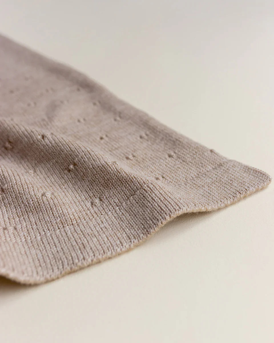 Het Bibi deken van het Belgische merk Hvid is een absolute klassieker en al sinds de oprichting van Hvid een echte bestseller. Deze ajourdeken is vervaardigd uit extra fijne Italiaanse merinowol, die bekend staat om zijn zachtheid, ademend vermogen en temperatuurregulerende eigenschappen. Dankzij de gemiddelde dikte is de deken perfect voor elk seizoen – warm in de winter, luchtig in de zomer.