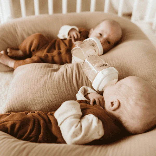 Het tweeling voedingskussen van Ilmaha in de kleur Hydrofiel Tetra Taupe is een onmisbare essential voor ouders van een tweeling, direct vanaf de geboorte. Dit multifunctionele kussen ondersteunt niet alleen bij het geven van borstvoeding of flesvoeding, maar kan ook eenvoudig worden omgevormd tot een babynestje met de bijpassende Relax hoes tweeling (apart verkrijgbaar).