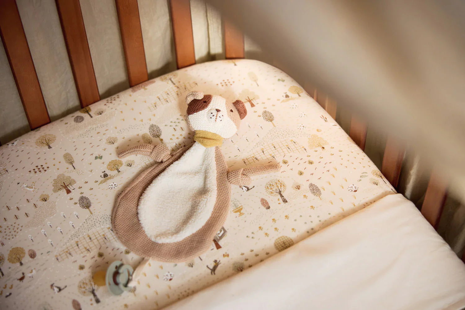 Dog Mick heeft een zacht buikje van fleece en een schattig gebreid hoofdje, wat hem onweerstaanbaar maakt om mee te knuffelen en te spelen. Het lusje aan de bovenkant zorgt ervoor dat je het doekje eenvoudig aan een fopspeen bevestigt. Zo blijft alles netjes bij elkaar en heeft je baby altijd een zacht vriendje in de buurt.