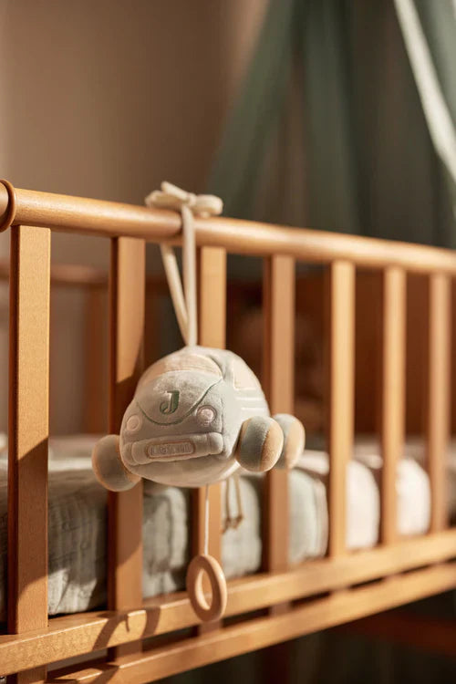 Laat je baby heerlijk ontspannen met de Jollein Muziektrekker On The Go in de vorm van een lief autootje. Deze stijlvolle muziekhanger in Sea Green is niet alleen een rustgevende metgezel, maar ook een charmante decoratie voor de box, kinderwagen of autostoel. De biscuitkleurige wieltjes en raampjes in ribstof geven het geheel een speelse én zachte uitstraling.