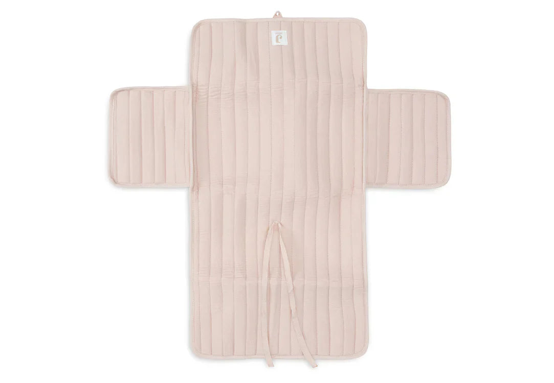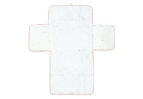 Het matje sluit eenvoudig met een stijlvolle striksluiting, waardoor het ook compact in je luiertas past. Of je nu op bezoek gaat, op reis bent of gewoon een dagje uit, dit verschoningsmatje maakt het verschonen van je kindje net even makkelijker – en mooier.