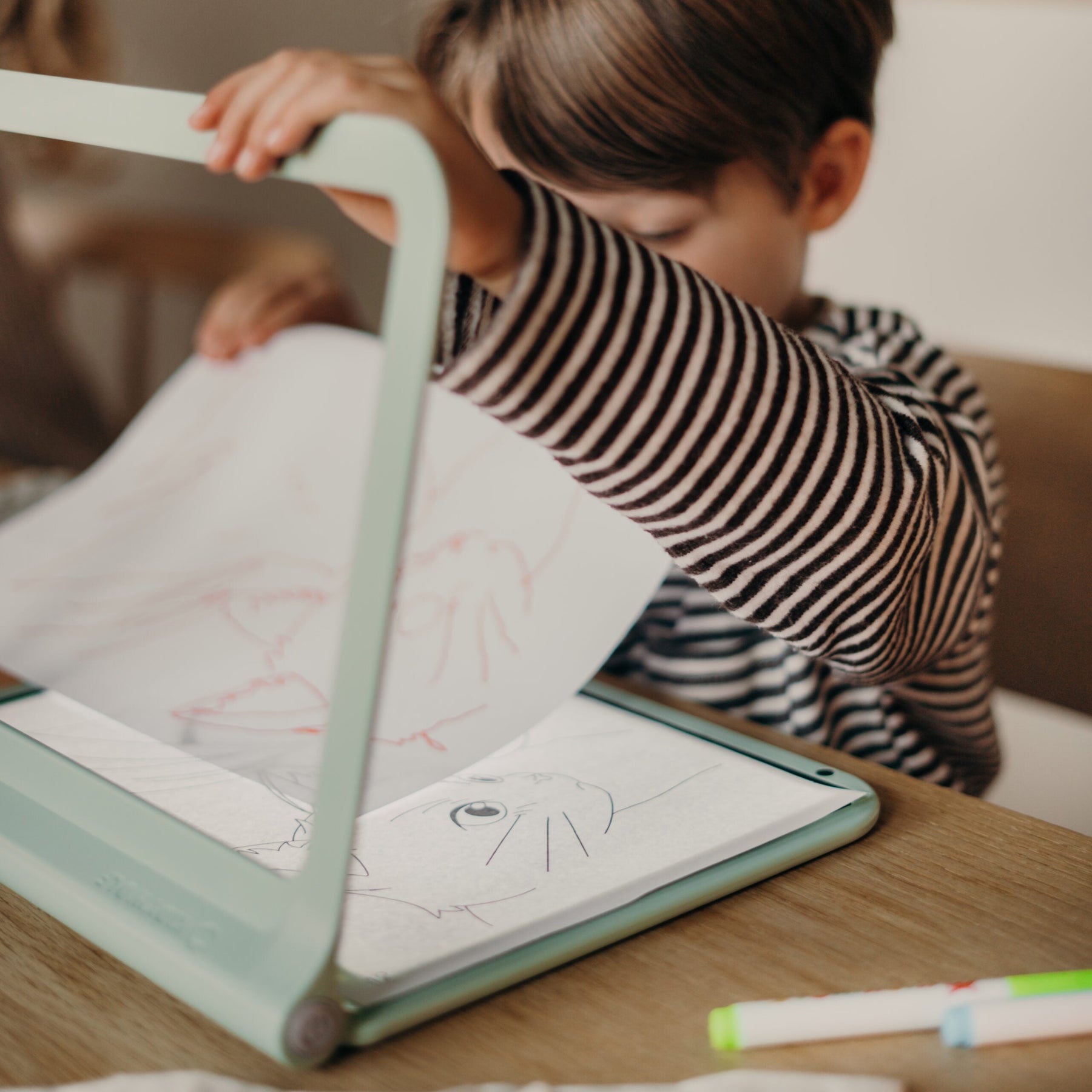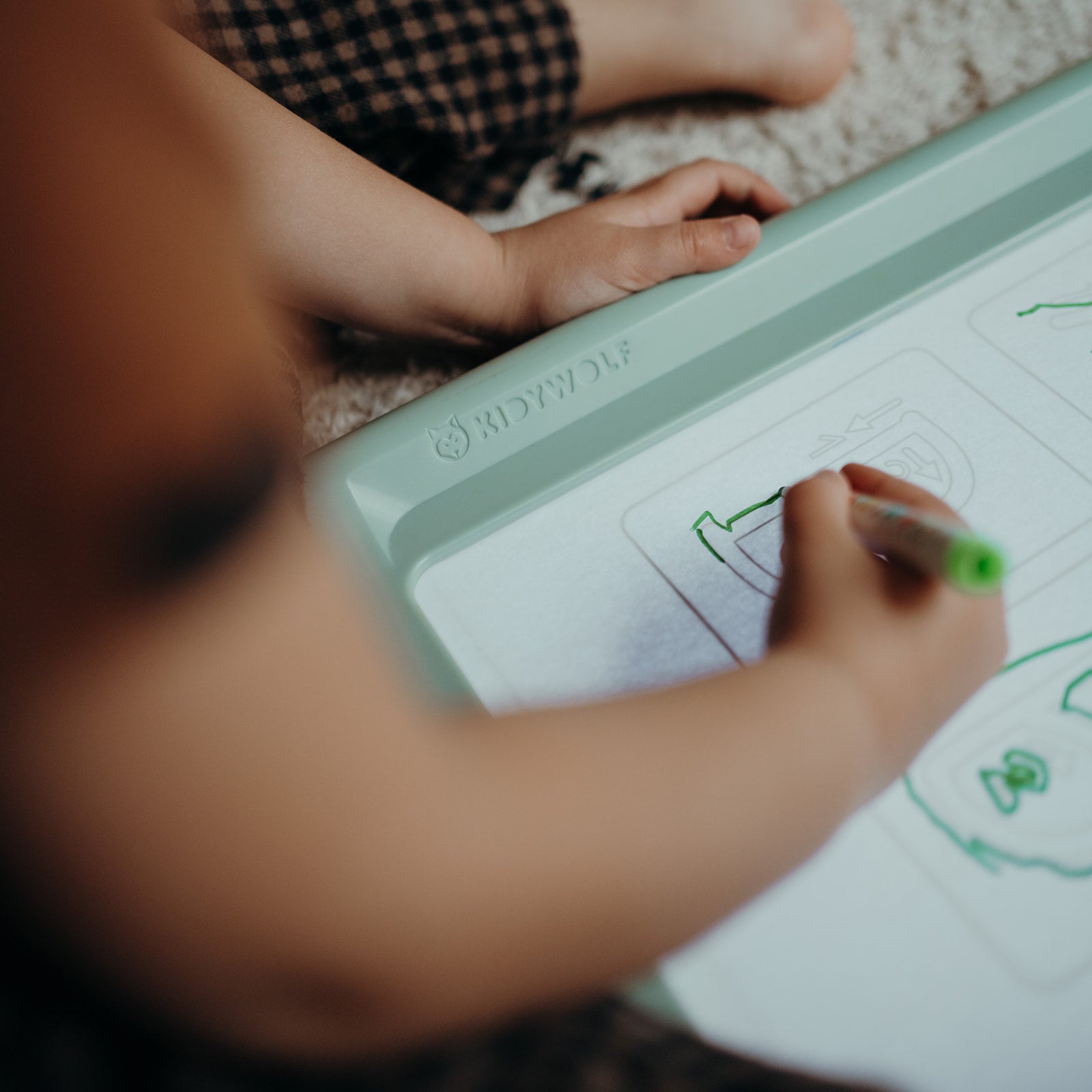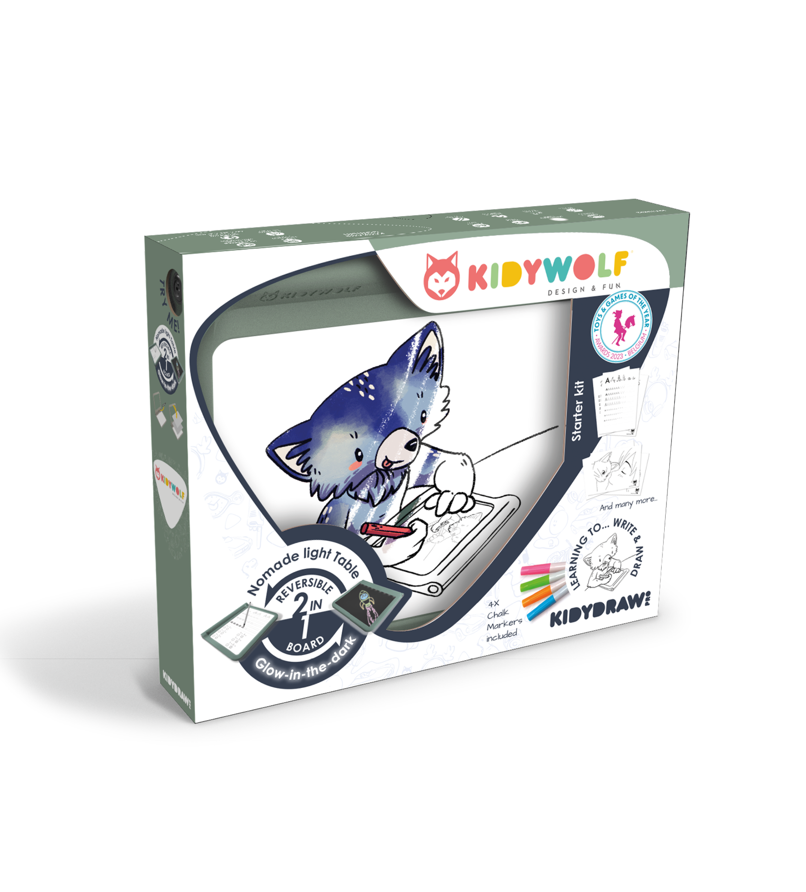 De Kidywolf Projectie Tekentafel Kidydraw Pro in groen is een geavanceerd hulpmiddel dat creatieve geesten van alle leeftijden inspireert. Dit nomadische tekentablet helpt kinderen om letters, cijfers en bestaande tekeningen nauwkeurig na te tekenen, wat het ideaal maakt voor zowel leren als spelen.