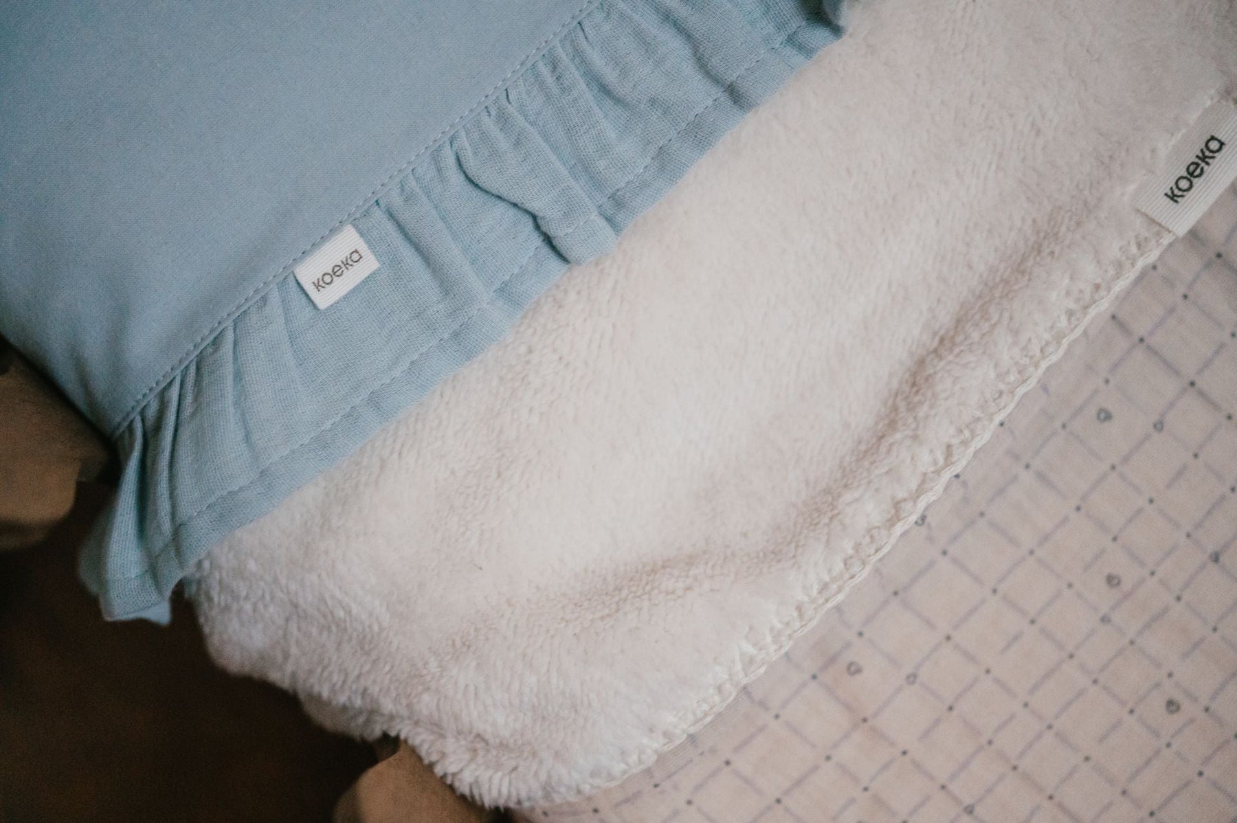 De Koeka Wiegdeken Teddy Lind in de kleur Warm White biedt jouw baby ultieme zachtheid en warmte tijdens de koudere maanden. Deze knusse wiegdeken is gevoerd met zachte teddy, waardoor je kleintje veilig en comfortabel slaapt, of het nu thuis is in de wieg of onderweg in de kinderwagen of autostoel (groep 0+). Ook ideaal als deken tijdens een dutje in de box of wipstoel.