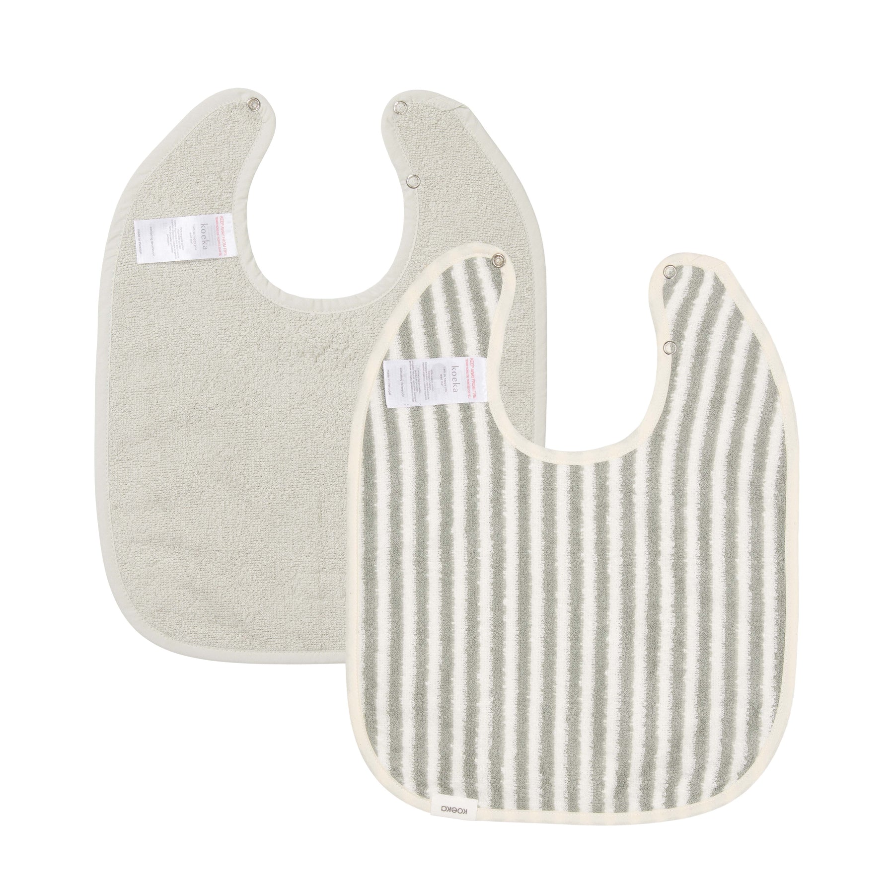 Bescherm de kleding van je baby tegen knoeien met de Koeka Playa slabben in een praktische 2-pack set, beschikbaar in de kleuren Ocean en Ocean Air.