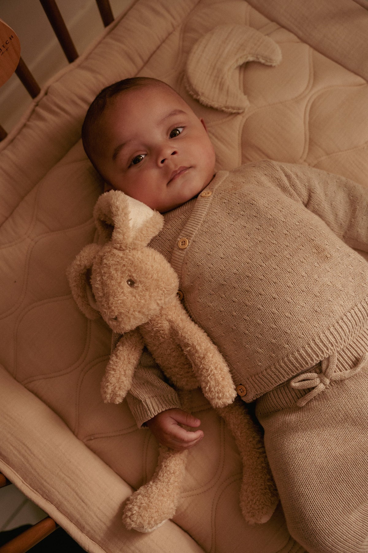 Gemaakt van hoogwaardige materialen in een warme, beige tint past deze knuffel moeiteloos in elke babykamer. Een hartverwarmend cadeau voor baby’s en peuters.
