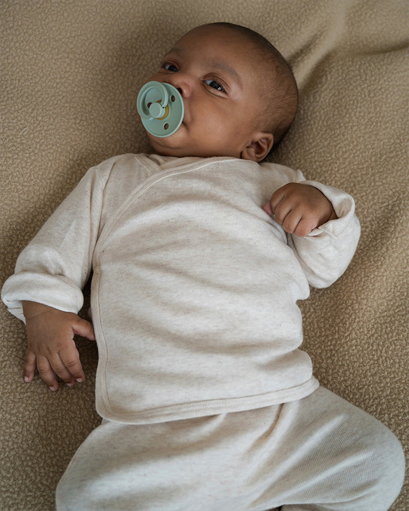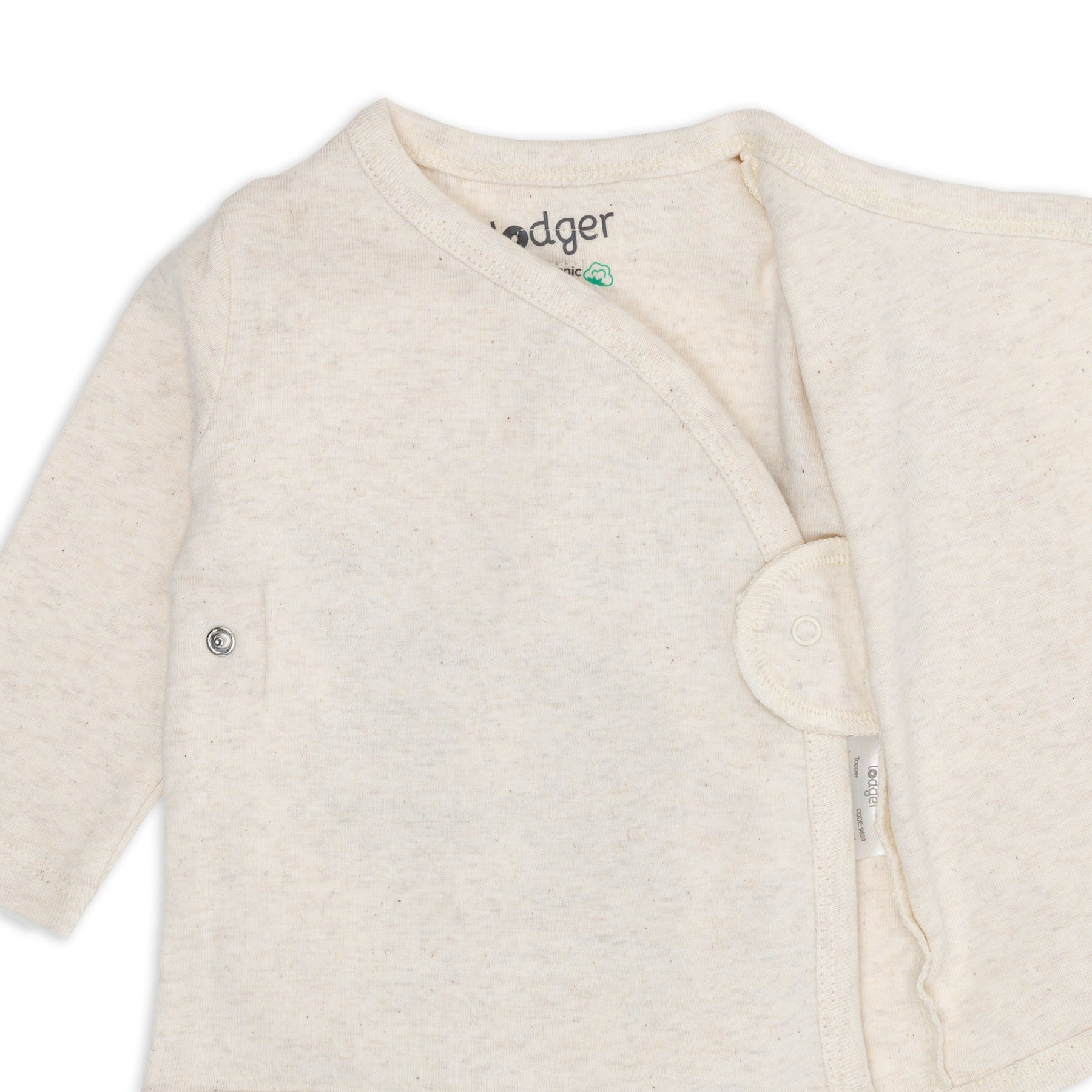 Dankzij de handige overslagsluiting met drukknoopjes hoef je de t-shirt niet over het hoofdje aan te trekken. Je wikkelt het eenvoudig om je baby heen – ideaal voor pasgeborenen en jonge baby’s.