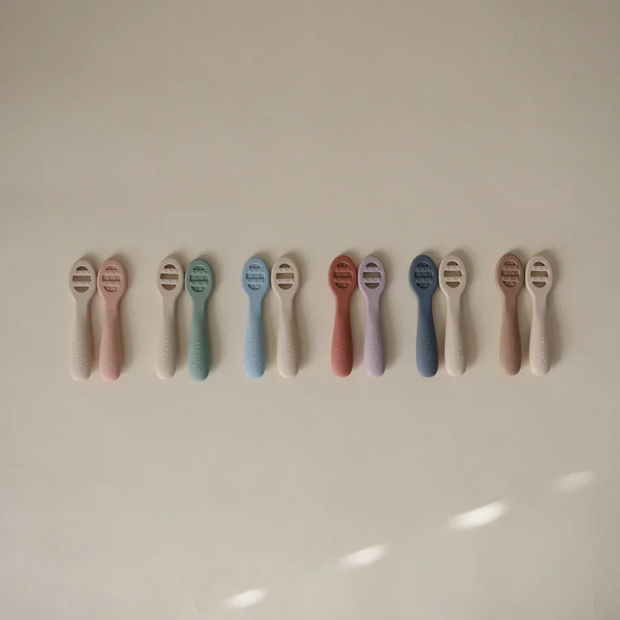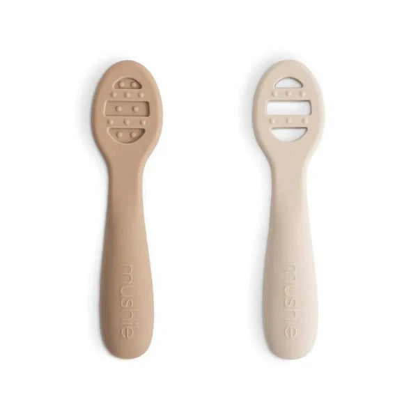 Begin moeiteloos met de eerste hapjes van je baby dankzij de Mushie First Feeding Lepeltjes in de stijlvolle kleuren Natural en Shifting Sand. Deze set van twee is speciaal ontworpen voor baby's die net beginnen met bijvoeding – zacht, veilig en gebruiksvriendelijk.