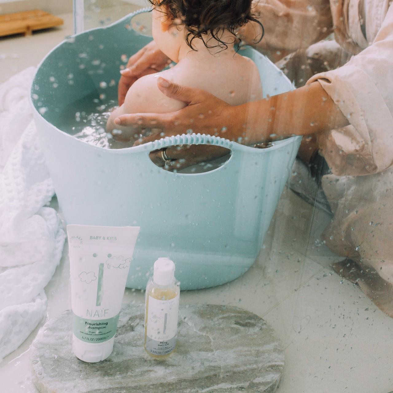 De olie mengt perfect met het water en laat geen vettige laag achter in het bad – dus geen glibberige baby bij het afdrogen. De zeepvrije samenstelling zonder SLES, microplastics, minerale oliën of parabenen maakt deze badolie geschikt voor dagelijks gebruik, zelfs bij de meest gevoelige huid.