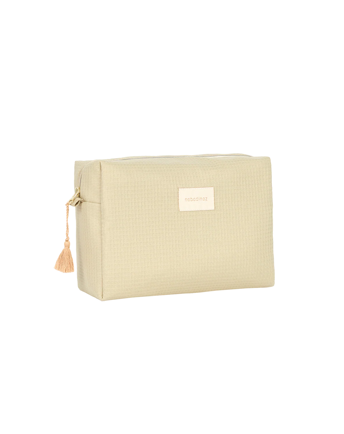 Elegant, praktisch en eco-vriendelijk – de Diva Toilettas in Green Tea van Nobodinoz is de ideale beautycase voor zowel ouders als baby’s. Vervaardigd uit biologisch katoenen honingraatstof, straalt deze toilettas pure zachtheid en verfijning uit, perfect voor wie stijl en functionaliteit wil combineren.