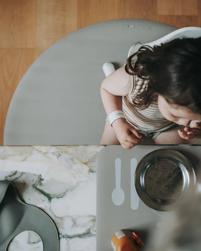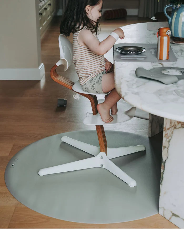 Bescherm je vloer met stijl met de Noui Noui Knoeimat in Olive Haze. Deze ronde knoeimat met een diameter van 115 cm is vervaardigd uit hoogwaardig zacht vinyl en is speciaal ontworpen om onder kinderstoelen te plaatsen. Geen zorgen meer over etensresten, knutselvlekken of krassen – deze duurzame mat houdt je houten vloer, tegels of tapijt schoon en onbeschadigd.