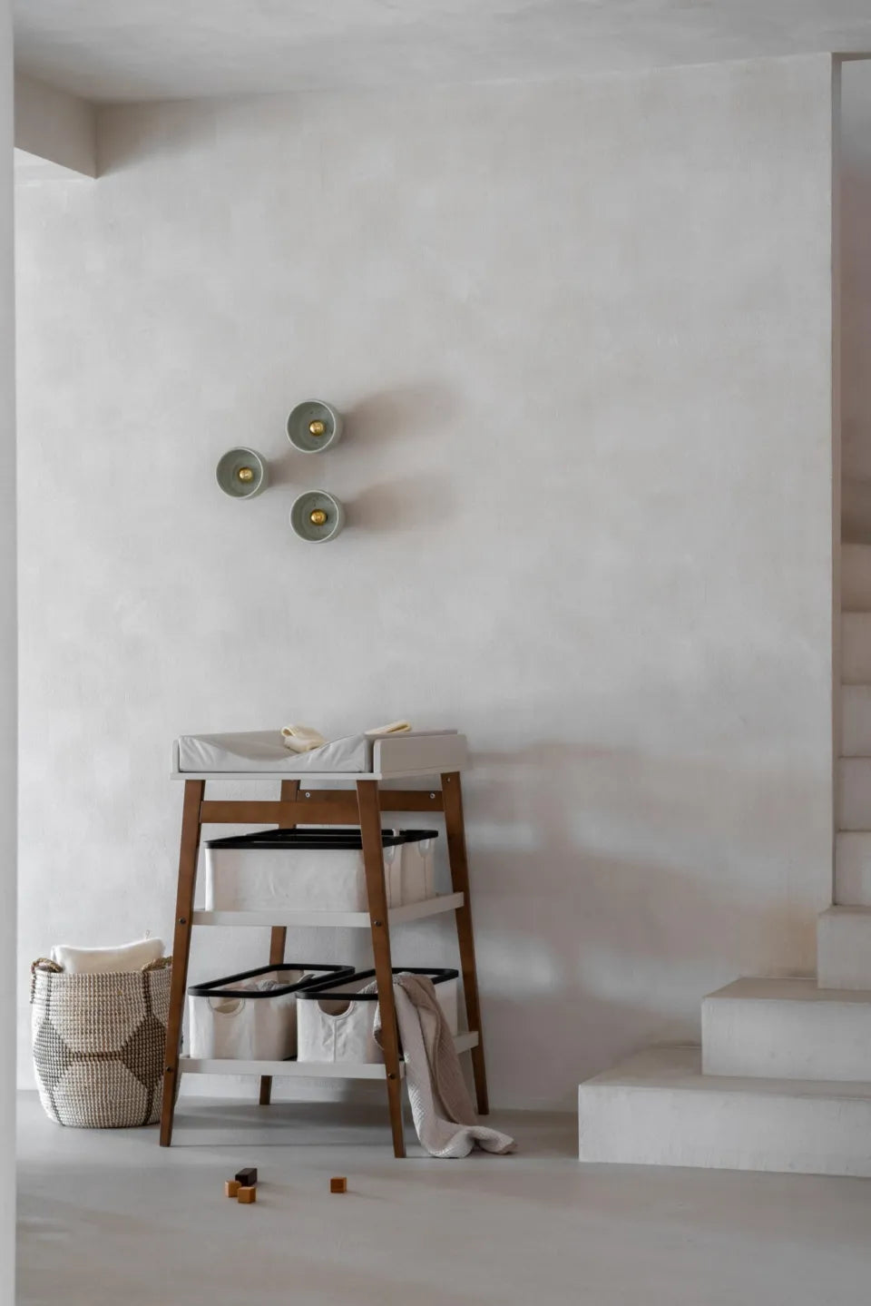 De vaste volle leggers bieden genoeg ruimte voor luiers, doekjes en andere benodigdheden, zodat je alles bij de hand hebt. Optionele opbergmandjes vergroten de opbergruimte, houden je spullen netjes en gemakkelijk toegankelijk. Veiligheid staat voorop: de luiertafel voldoet aan de EN 12221-2008+A1:2013 norm.