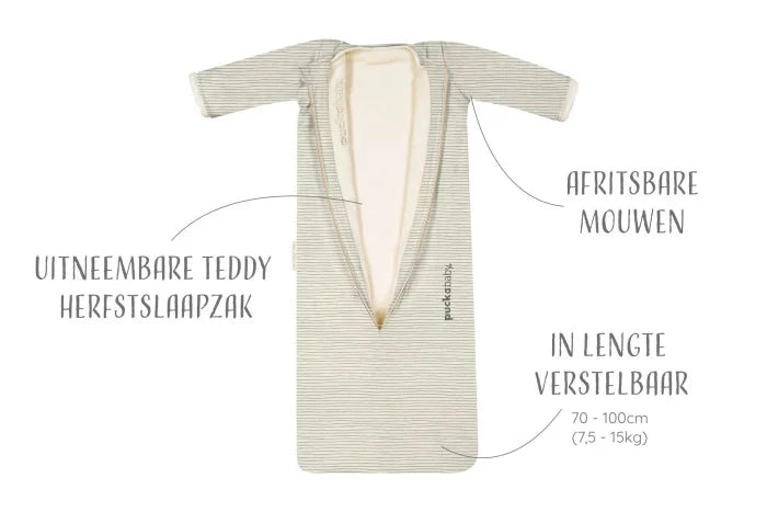 Met de Puckababy Slaapzak 4 Seizoenen geef je je kindje de beste nachtrust, met een geborgen en veilig gevoel, voor jarenlang slaapcomfort.